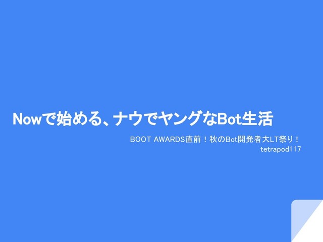 Nowで始める、ナウでヤングなBot生活 BOOT AWARDS直前!秋のBot開発者大LT祭り! tetrapod117
