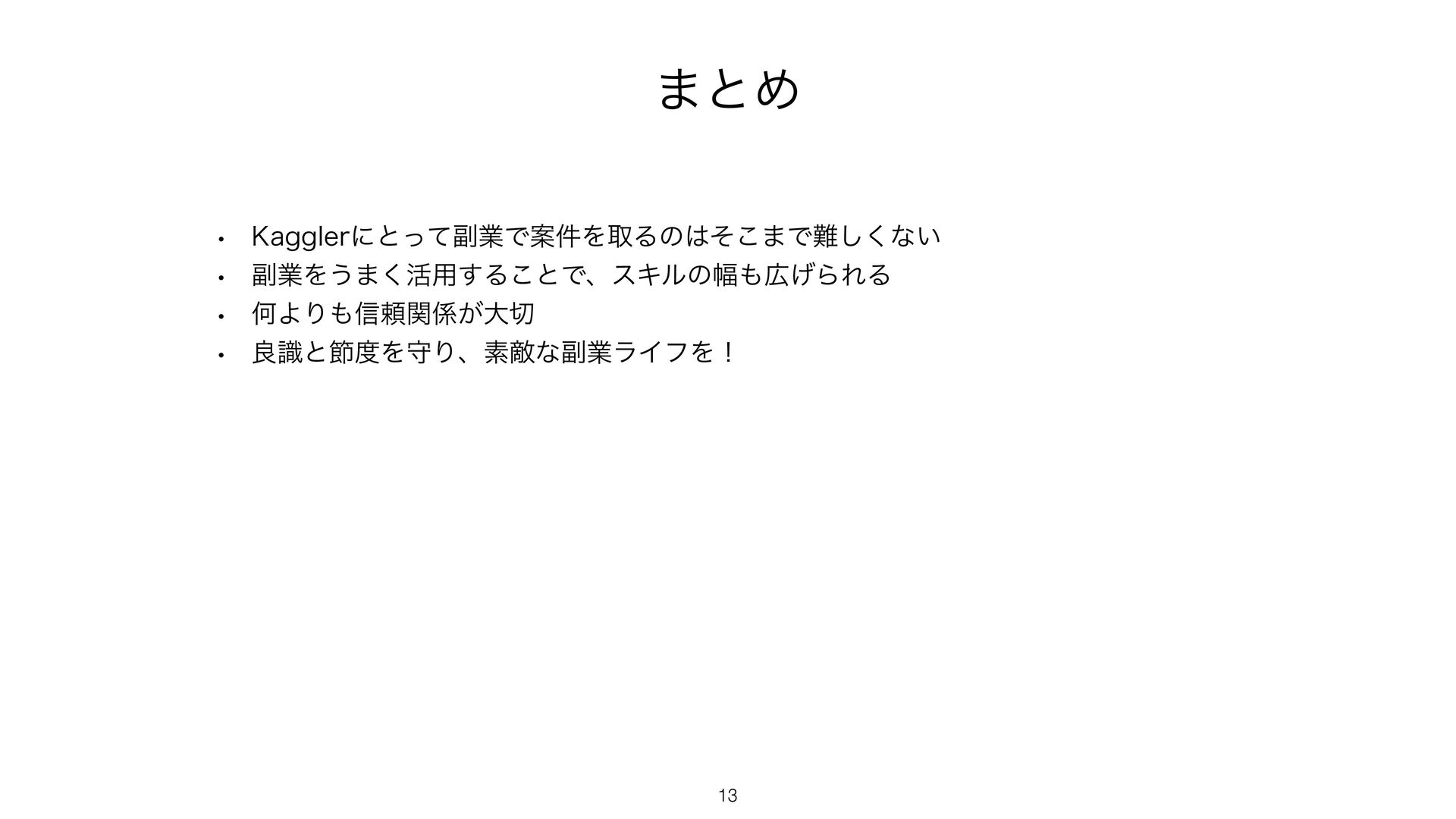 ͰҊ݅Λ֫ಘ͠ɺ৴༻ΛಘΔ w ʮ͍ͭͬͯ͘͜ΕΔͭͩʯͱ৴༻ ͯ͠Β͑Εɺ৽͍͠ྖҬͷࣄ ͑ΔΑ͏ʹͳΔ w ͜͜·Ͱ͘ΕɺऩೖΛಘͳ͕Βٕज़ऀ ͱͯ͠Ͱ͖Δ ˠεΩϧͷ෯͕Δ w ੜ"*ؔ࿈ ʢ3"(γεςϜߏஙͳͲʣ w $//Ͱͷը૾ॲཧ w ৽ͨͳυϝΠϯͰͷσʔλੳ w ϏδωεͰͷσʔλੳ w Ϗδωεߩݙ w FUD w ίϯϖͷউͪํ w ,BHHMFಛ༗ͷ υϝΠϯࣝ w FUD w ಛྔΤϯδχΞϦϯά w &%"εΩϧ w Ϟσϧͷࣝ ʢ-JHIU(#. // FUDʣ w FUD