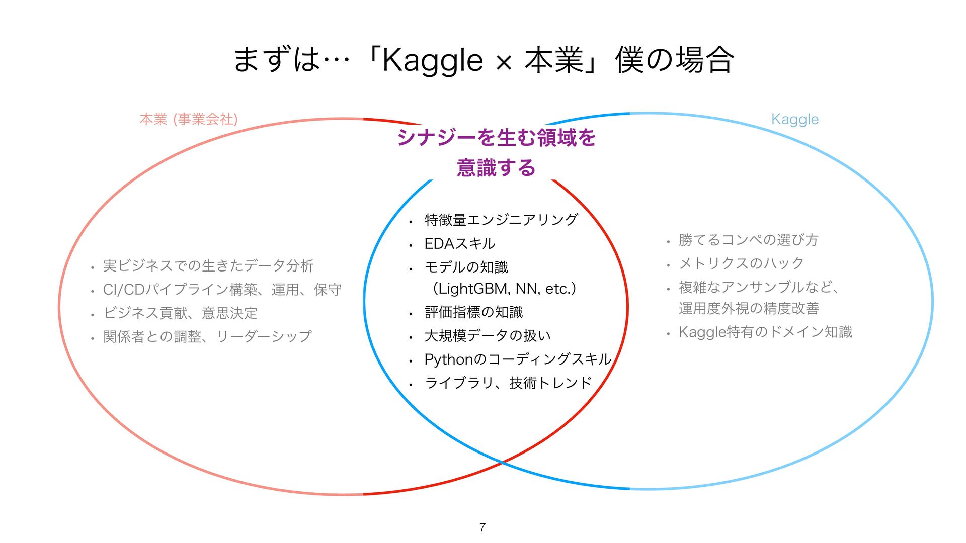 6 w ಛྔΤϯδχΞϦϯά w &%"εΩϧ w Ϟσϧͷࣝ ʢ-JHIU(#. // FUDʣ w ධՁࢦඪͷࣝ w େنσʔλͷѻ͍ w 1ZUIPOͷίʔσΟϯάεΩϧ w ϥΠϒϥϦɺٕज़τϨϯυ ຊۀ ࣄۀձࣾ ,BHHMF w ࣮ϏδωεͰͷੜ͖ͨσʔλੳ w $*$%ύΠϓϥΠϯߏஙɺӡ༻ɺอक w Ϗδωεߩݙɺҙࢥܾఆ w ؔऀͱͷௐɺϦʔμʔγοϓ