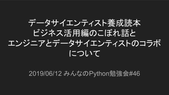 データサイエンティスト養成読本 ビジネス活用編のこぼれ話と エンジニアとデータサイエンティストのコラボ について 2019/06/12 みんなのPython勉強会#46