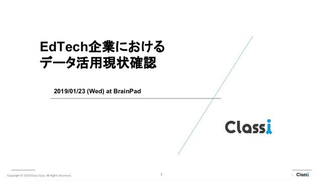 2019/01/23 (Wed) at BrainPad Copyright © 2018 Classi Corp. All Rights Reserved. 1