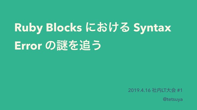 Ruby Blocks ʹ͓͚Δ Syntax Error ͷṖΛ͏ 2019.4.16 ࣾLTେձ #1