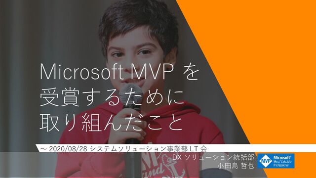 後方支援&前方支援 ▸ Microsoft MVP for Microsoft Azure 2018/06 ~ (3 年目) https://mvp.microsoft.com/ja-jp/PublicProfile/5003113 ▸ コミュニティ活動 Qiita https://qiita.com/tetsuya-ooooo SlideShare https://www.slideshare.net/tetsuyaodashima ET ソフトウェアデザインロボットコンテスト (ET ロボコン) 実行委員会 https://www.etrobo.jp/ Japan Azure User Group (JAZUG) https://jazug.connpass.com/ 2