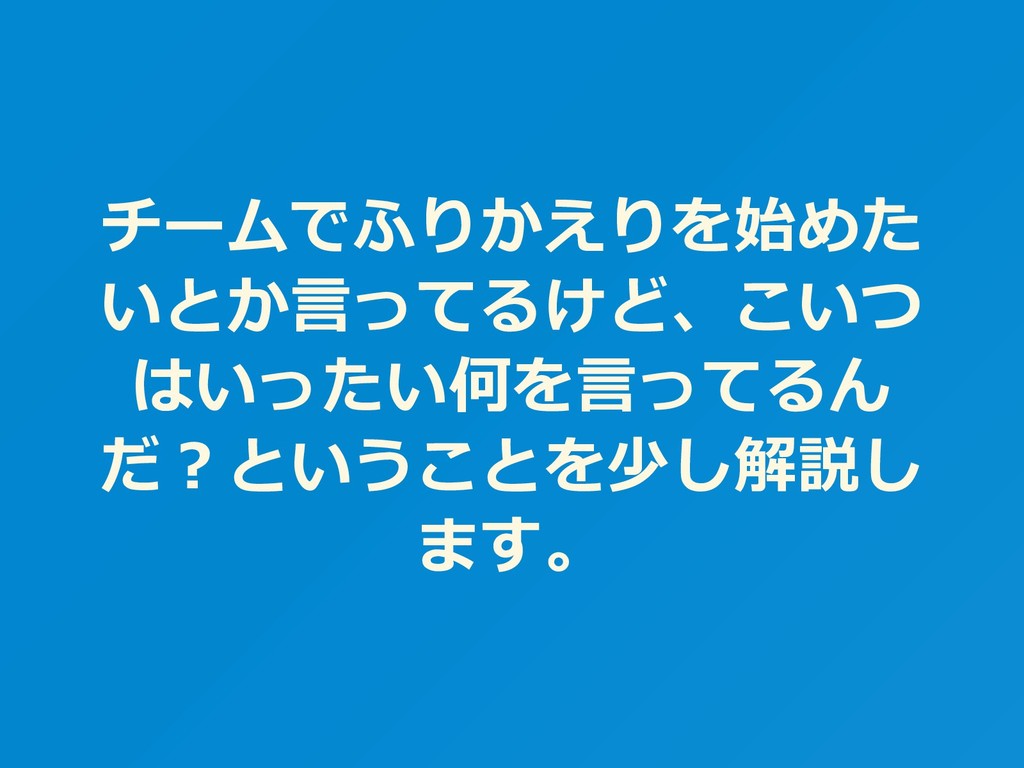 チームでふりかえりを始めた いとか⾔ってるけど、こいつ はいったい何を⾔ってるん だ︖ということを少し解説し ます。