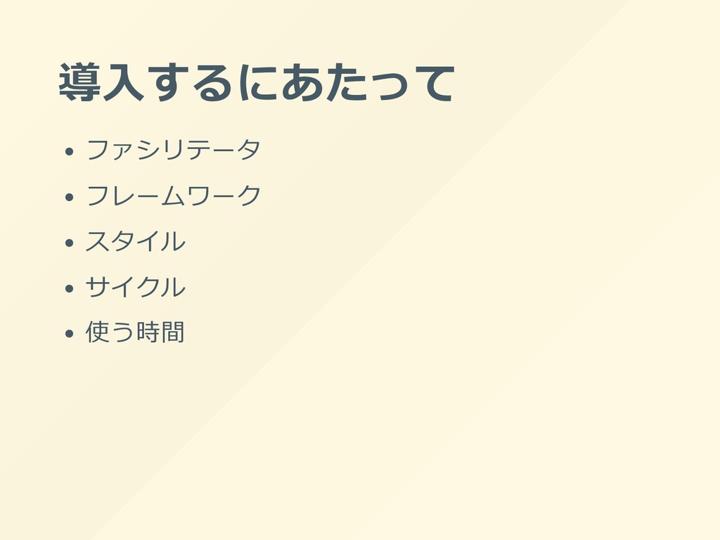 導⼊するにあたって ファシリテータ フレームワーク スタイル サイクル 使う時間