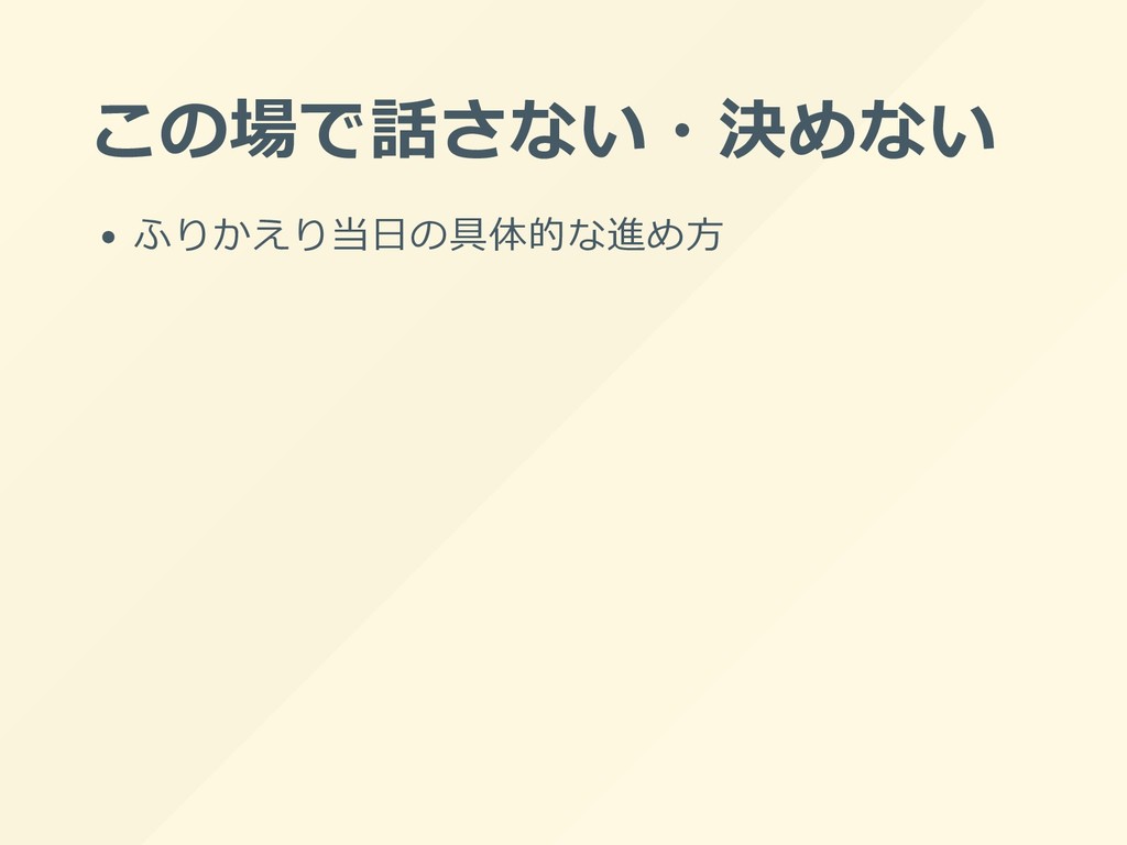 この場で話さない・決めない ふりかえり当⽇の具体的な進め⽅