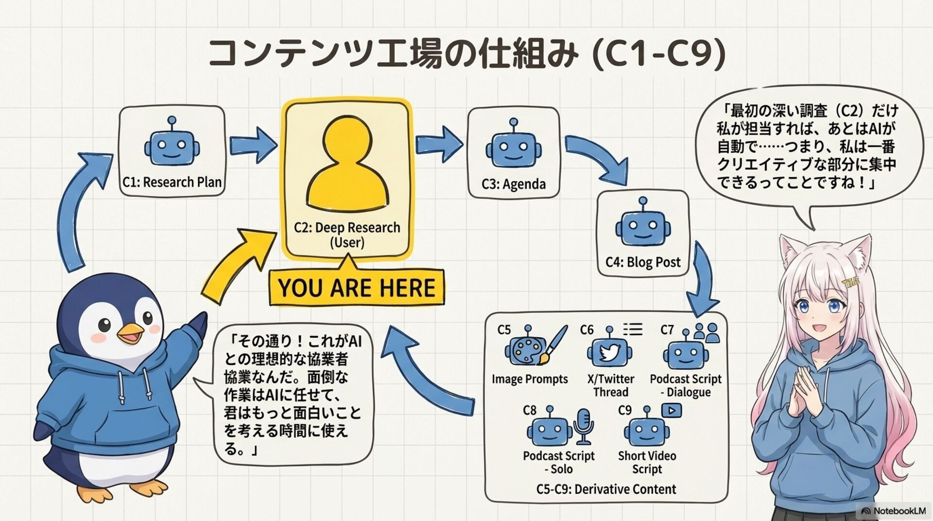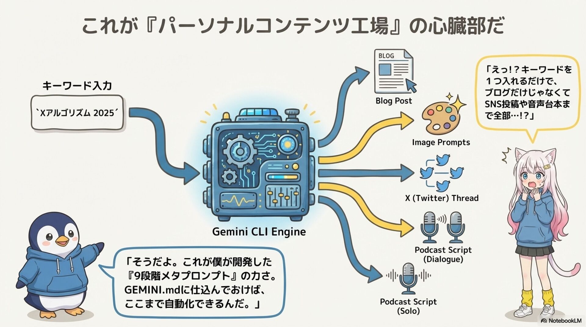 黒い画面なんて見たくもなかった私が、9段階の自動化システムで『パーソナルコンテンツ工場』を完成させました。1つのテーマを投げるだけで、記事・画像プロンプト・SNS・音声台本まで勝手に生まれてくる。もう『何書こう…』で悩む必要はありません