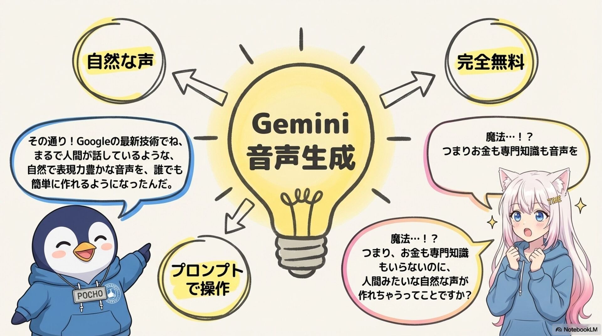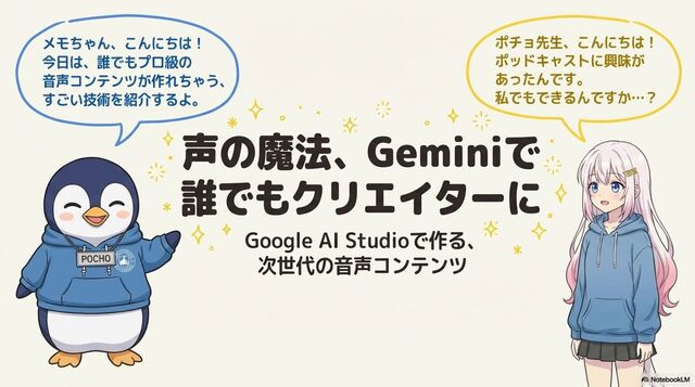 録音アプリの赤いボタンを前に「えーっと...」って躊躇したことありませんか?その時代、もう終わりです。Gemini音声生成なら、あなたの代わりに美しい声で読み上げ。気軽に、でも本格的に。誰でもポッドキャスターになる手法を完全解説します