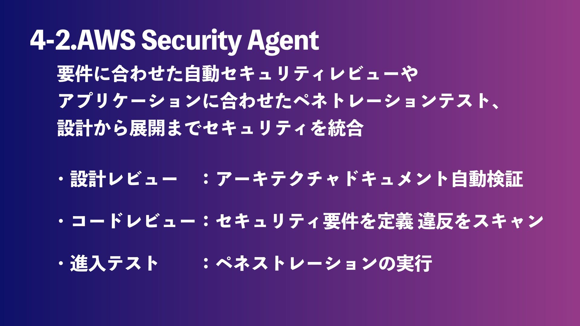 "844FDVSJUZ"HFOU ཁ݅ʹ߹ΘͤͨࣗಈηΩϡϦςΟϨϏϡʔ ΞϓϦέʔγϣϯʹ߹ΘͤͨϖωτϨʔγϣϯςετɺ ઃܭ͔Βల։·ͰηΩϡϦςΟΛ౷߹ ɾઃܭϨϏϡʔɹɿΞʔΩςΫνϟυΩϡϝϯτࣗಈݕূ ɾίʔυϨϏϡʔɿηΩϡϦςΟཁ݅ΛఆٛҧΛεΩϟϯ ɾਐೖςετɹɹɿϖωετϨʔγϣϯͷ࣮ߦ