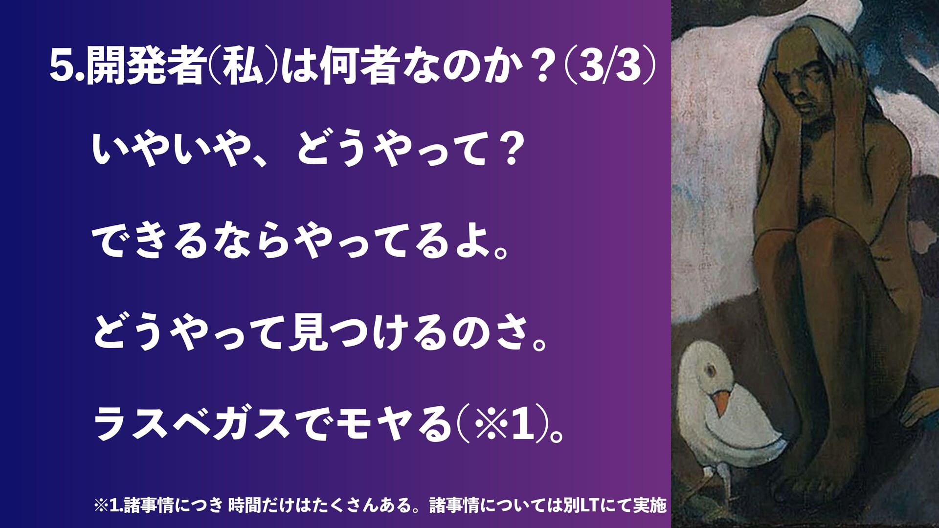 "84$&0 .BUU(BSNBOͷϝοηʔδ 8IZ/PU ͳͥͦ͏͠ͳ͍ͷ͔ʁ ˠ"*ΛΘͳ͍΄͏͕ෆࣗવͰ͋Δ ະདྷ։ൃऀͷखʹ͋Δ ݸਓతʹʰ"*ʹΑΔʮ։ൃʯͷ࠶ൃ໌ʱ ͱ͍͏ҹͷSF*OWFOU