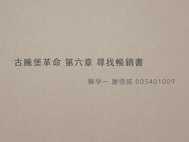 古騰堡⾰革命 第六章 尋找暢銷書 醫學ㄧ 謝德威 B05401009