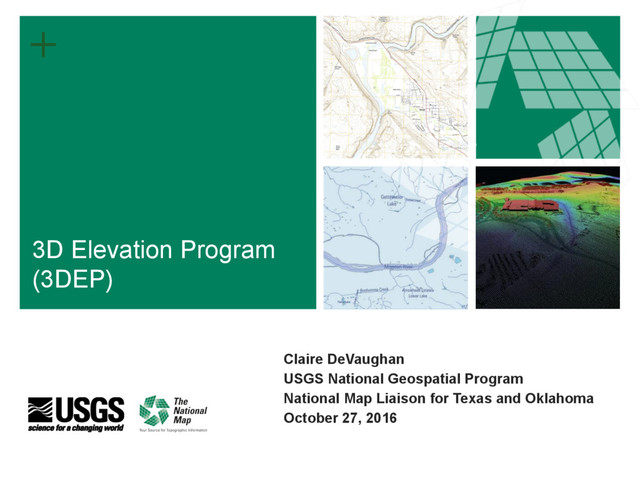the 3D Elevation Program in general: [email protected] Or contact your National Map Liaison with questions about 3DEP in your state/area: Claire DeVaughan National Map Liaison for Texas and Oklahoma 512-927-3583 [email protected]