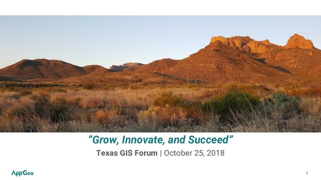 not nearly as many as there are deer • Description: Subtribe of “homo sapiens” • Population: 500,000 geospatial services jobs in US (BCG estimate, 2012) • Diet: Pizza, beer, salad, a variety of meats (including venison and amphibians), nuts, fruits, vegetables, ice cream, and cookies • Habitat: Basements, offices, backrooms, bar rooms, honky tonks, tents, and under the stars • Range: Global dispersal • Life Span: 70-90 years (based on specimens in captivity) Sources: BCG, NSGIC, Esri UC, GeoRodeo, France, and Texas GIS Forum Grow + Innovate = Succeed Bill Johnson Photo GIS Day Nov. 14th, PostGIS Day Nov. 15th