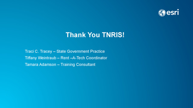 W orkflow s ArcGIS Online Subscriptions for Organizations: User W orkflow s (ILO only) Exploring Enterprise GIS: A W orkshop for Leaders Geodata Building Geodatabases Editing Data with ArcGIS for Desktop Spatial Analysis ArcGIS 3: Perform ing Analysis Designing and Sharing Designing M aps with ArcGIS ArcGIS 4: Sharing Content on the W eb ArcGIS Online Subscriptions for Organizations: Publisher W orkflow s Data M anagem ent Configuring and M anaging the M ultiuser Geodatabase Im plem enting Versioned W orkflow s in a M ultiuser Geodatabase Distributing Data Using Geodatabase Replication Deploying and M aintaining a M ultiuser Geodatab Practicing Geod Serv R Recommended Course Course Type ILT ILT ILO ILT ILT ILT ILT ILT ILT ILT ILT ITL ITL O Optional Course Course Duration [days] 2 3 0.5 0.5 3 2 2 2 2 0.5 3 3 2 2 2 C Completed Course Organizational Roles Agency Job Title GIS Team OIR GIS Director Pedersen, Dennis O O OIR GIS Analyst 3 Meeks, Chris O R O O OIR GIS Analyst 3 Herrington, Brandon O O OIR GIS Analyst 3 White, Suzanne R O O R R R OIR Info Systems Tech Cons Griswold, Andrew R O O R O O O OIR GIS Analyst 3 Lane, Matt R O OIR GIS Tech 2 Thompson, Nancy O R O O OIR GIS Analyst 2 Pittenger, Ryan R O O O O O OIR GIS Analyst 2 Gilliam, Patrick R R R OIR GIS Analyst 2 (new position) Williams, Kevin R O O R O O O O OIR GIS Analyst 2 (new position) Riter, Michael R O O R O O O O Military GIS Analyst 2 Yu, HeeChong O O R R R Safety GIS Analyst 2 Tucker, Ray R R TDEC GIS Analyst 3 Buchanan, Tim TDOT IT Manager Senior McDonough, Kim TDOT GIS Analyst 2 Anderson, Peggy TDOT Data Architect Letillier, April R R TWRA GIS Tech Mgr 1 Jones, Jeanette R R R R O R R O O TWRA Info Resource Spec 3 Porter, Tracy O O R O O TWRA Info Resource Spec 3 Barrett, Lynn R R R R R R R R TWRA GIS Tech Associate Broach, Chelsea O R R O R O O O TDOT Business Tech Intermediate TDOT R TDOT Business Tech Intermediate TDOT R TDOT GIS Analyst Advanced (1) TDOT R R TDOT GIS Analyst Advanced (2) TDOT R R R R R TDOT GIS Analyst Advanced (3) TDOT R R TDOT GIS Analyst Advanced (4) TDOT R R TDOT GIS Analyst Intermediate (1) TDOT R TDOT GIS Analyst Intermediate (2) TDOT R R R R TDOT GIS Analyst Intermediate (3) TDOT R R R TDOT Business Solutions Architect Brian Cox (may not have GIS experience) R State of TN Training Across Multiple Departments