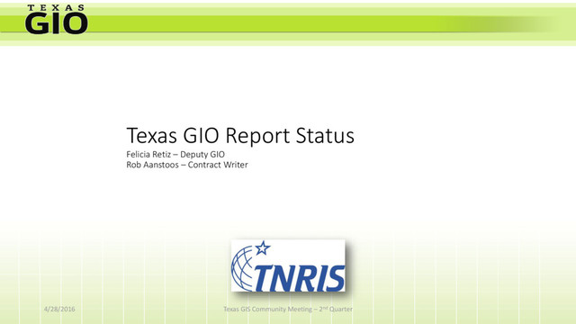 4/28/2016 Texas GIS Community Meeting – 2nd Quarter GIO Report