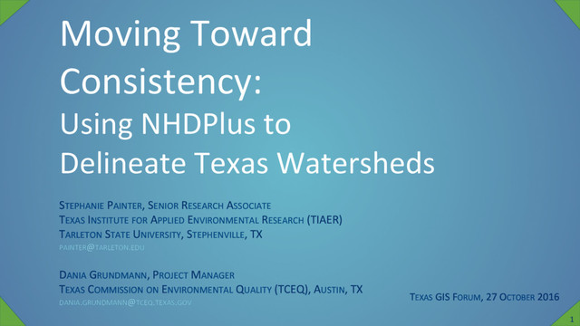 Bondelid, Tommy Dewald, Craig Johnston, Richard Moore, and Alan Rea. 2012. "NHDPlus Version 2 User Guide." Accessed Sep 22, 2016. hnp://www.horizon-systems.com/nhdplus/NHDPlusV2_documentaZon.php. o TNRIS. 2016. "TCEQ Assessment Units." Texas Natural Resources Informa,on System. Sept 22. hnps://tnris.org/data-catalog/entry/tceq-assessment-units/. Thank you 28