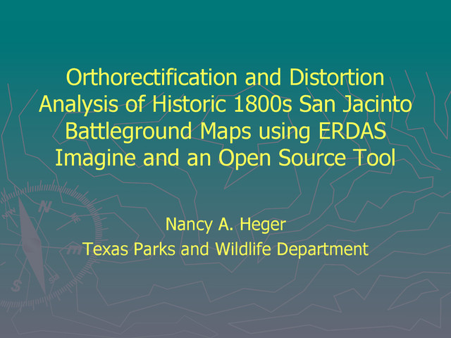 of archeological significance before doing restoration work ► Also interested in change through time Purpose ► Use historic maps of the San Jacinto Battleground to § identify sites of historical significance § Document change through time