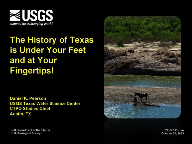 of Texas is Under Your Feet and at Your Fingertips! Daniel K. Pearson USGS Texas Water Science Center CTPO Studies Chief Austin, TX TX GIS Forum October 28, 2015
