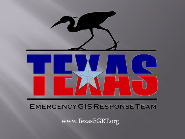 Datasets ¨ Developed SOG and Response Templates ¨ Require FEMA ICS Training ¨ Conduct On-site training classes ¡ How to respond to an event ¡ How to use the Tx EGRT Templates ¡ How to work with EMC’s to provide critical mapping