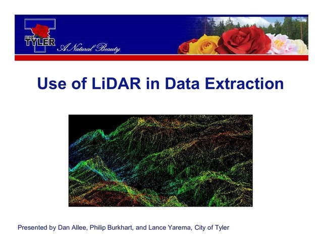 Use of LiDAR in Data Extraction Presented by Dan Allee,