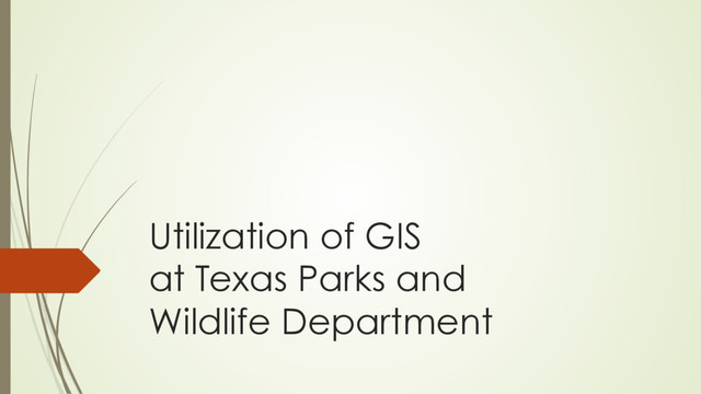 of GIS at Texas Parks and Wildlife Department ´ Showcase the new public facing GIS web page ´ Provide specific project examples of GIS ´ Landscape Ecology Program ´ Discover Texas Through Maps-Wildlife Division ´ Floodplain Inundation Modeling-River Studies Program