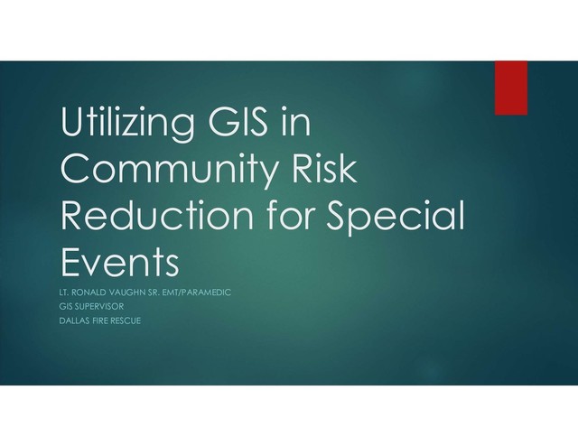https://strategicfire.org/ Eight hours of terror How a peaceful protest turned into the Dallas police’s deadliest day By Avi Selk, Hannah Wise, Conor Shine | Staff Writers Published July 8, 2016 http://interactives.dallasnews.com/2016/dallas-police-ambush-timeline/ Key moments in the 2013 Boston Marathon bombing Tuesday July 17, 2018 http://www.chicagotribune.com/sports/breaking/ct-boston- marathon-bombing-key-moments-20180413-story.html Las Vegas shooting: Isis claims responsibility for deadliest gun massacre in modern US history Monday October 2, 2017 https://www.independent.co.uk/news/world/americas/las-vegas-isis- shooting-claims-stephen-paddock-responsibility-latest-a7978941.html GIS for the Fire Service An ESRI White Paper June 2012 http://www.esri.com/library/whitepapers/pdfs/gis-for-fire-service.pdf