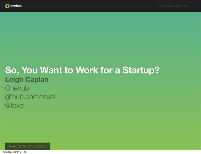 Me • Development Lead @ Onehub • Joined January 2008 • Responsible for front-end & back-end development • Manage staging/deploy process 2 Thursday, March 21, 13
