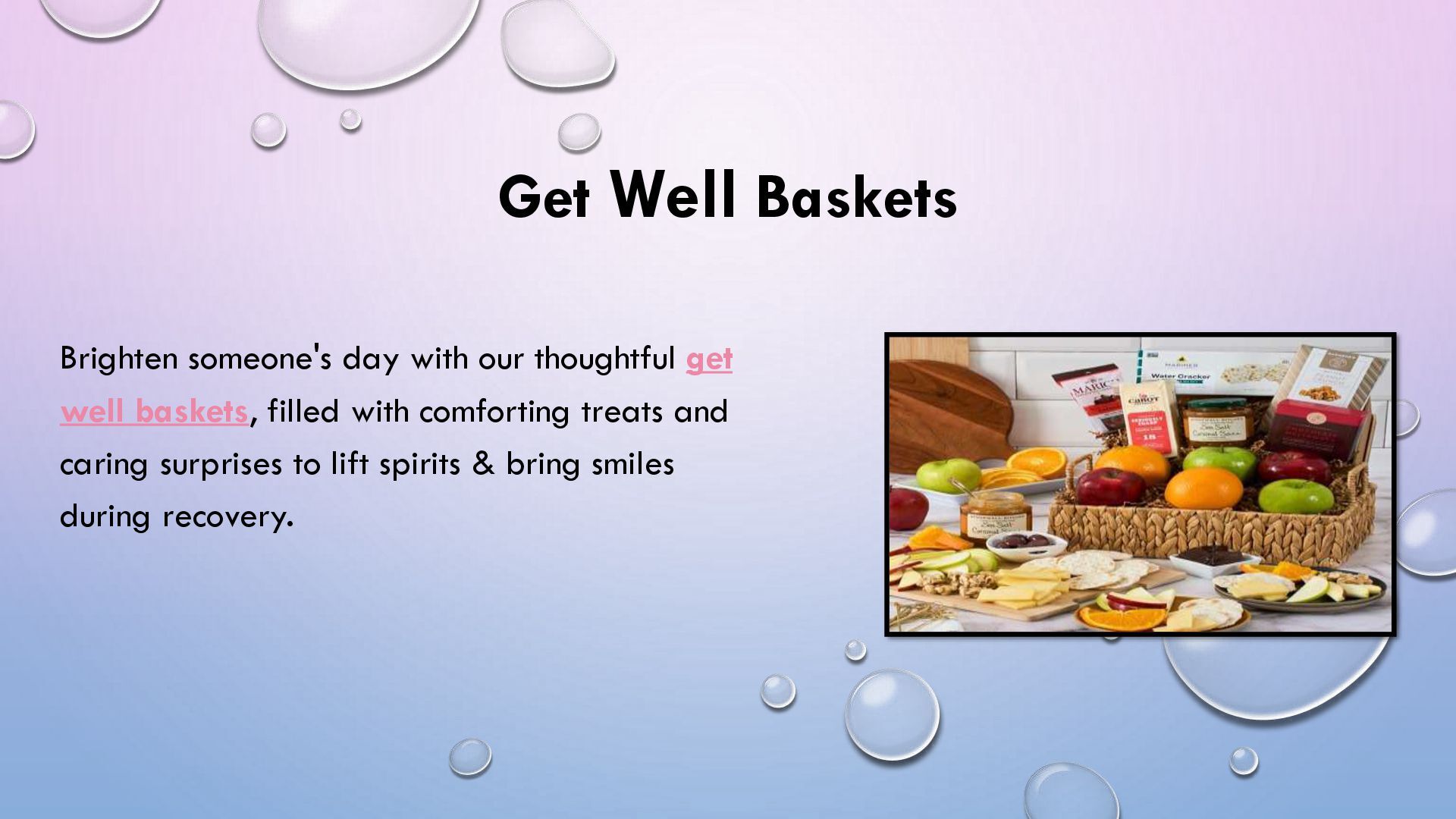 Brighten someone's day with our thoughtful get well baskets, filled with comforting treats and caring surprises to lift spirits & bring smiles during recovery.