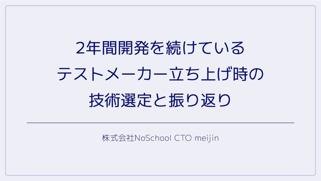 2年間開発を続けている テストメーカー立ち上げ時の 技術選定と振り返り 株式会社NoSchool CTO meijin