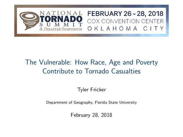 or interactive) to better understand the impact demographic and socioeconomic variables have on tornado casualties Estimates of interest include: Young and old population White and black population Household median income Mobile homes