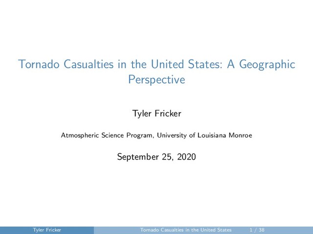 Devastating Tornadoes in the United States: 1995–2016”. In: Annals of the American Association of Geographers. Tyler Fricker Tornado Casualties in the United States 25 / 38