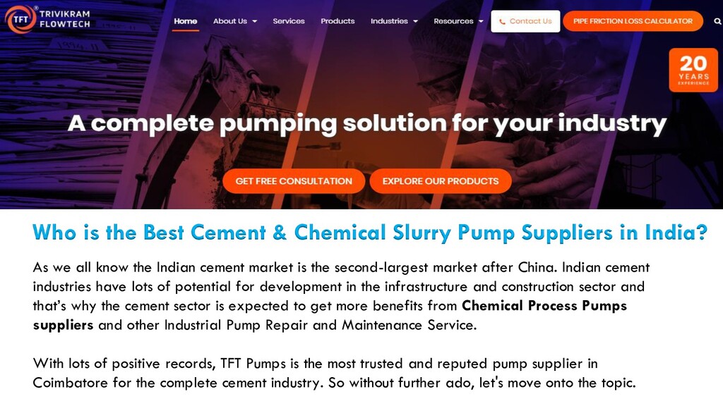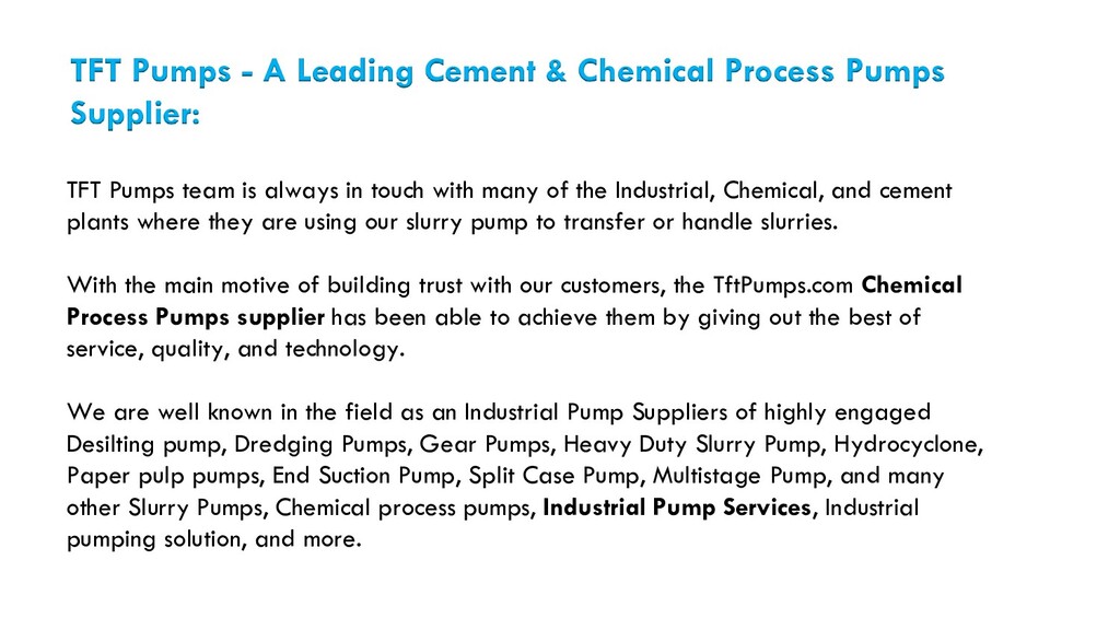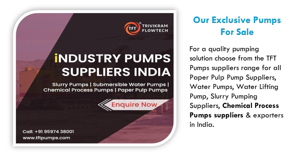 We are there for you to help you with good quality Industrial Pump Suppliers. our Industrial Pumps are known for efficient functioning and compactness. we have acquired wide recognition as Industrial Pumps Supplier in Coimbatore, India. For more information, follow us on our social media page https://tftpumps.com