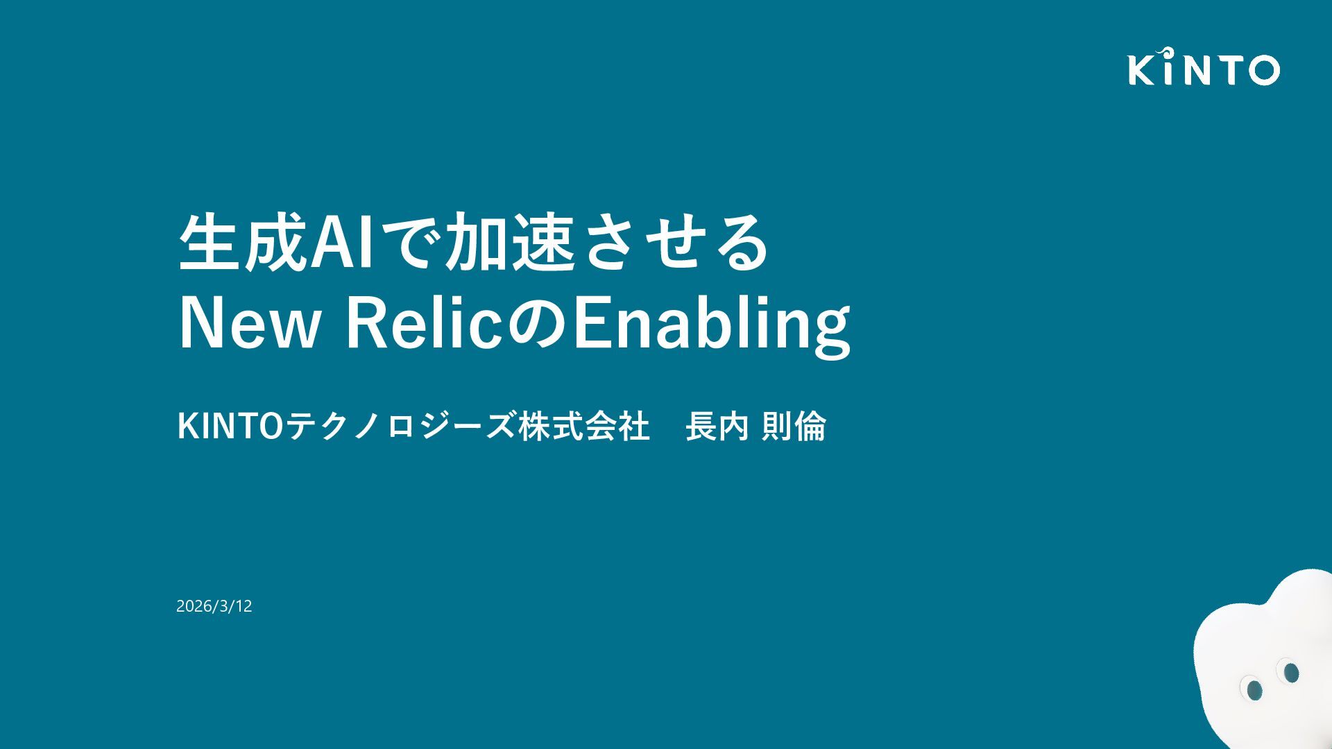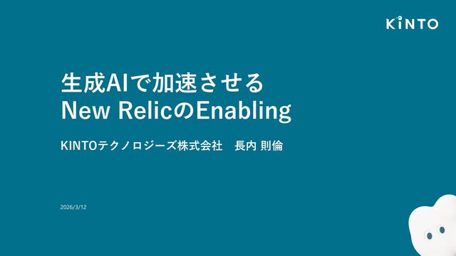 ⽣成AIで加速させる New RelicのEnabling KINTOテクノロジーズ株式会社 ⻑内 則倫 2026/3/12