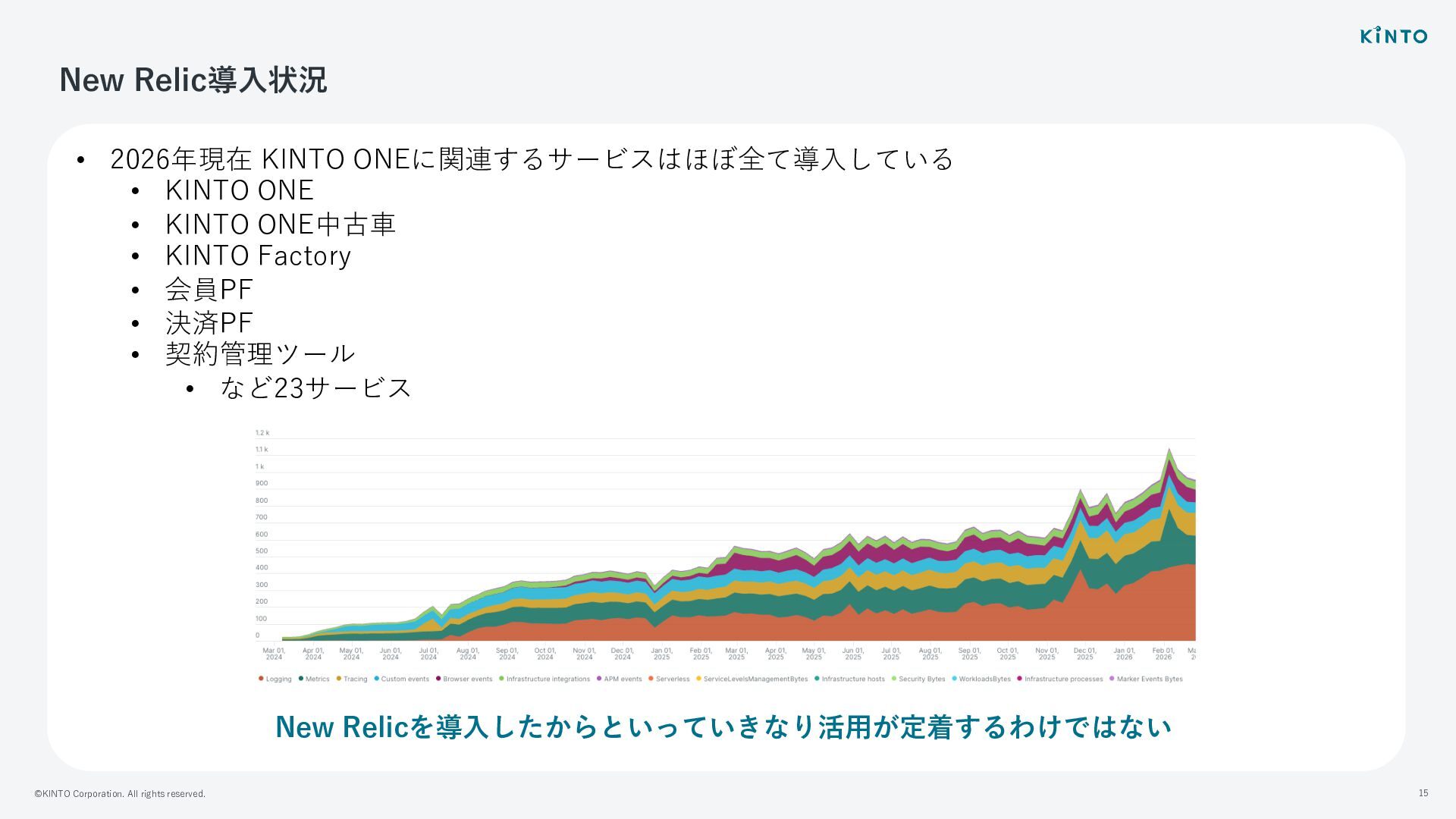 ©KINTO Corporation. All rights reserved. 15 New Relic導⼊状況 • 2026年現在