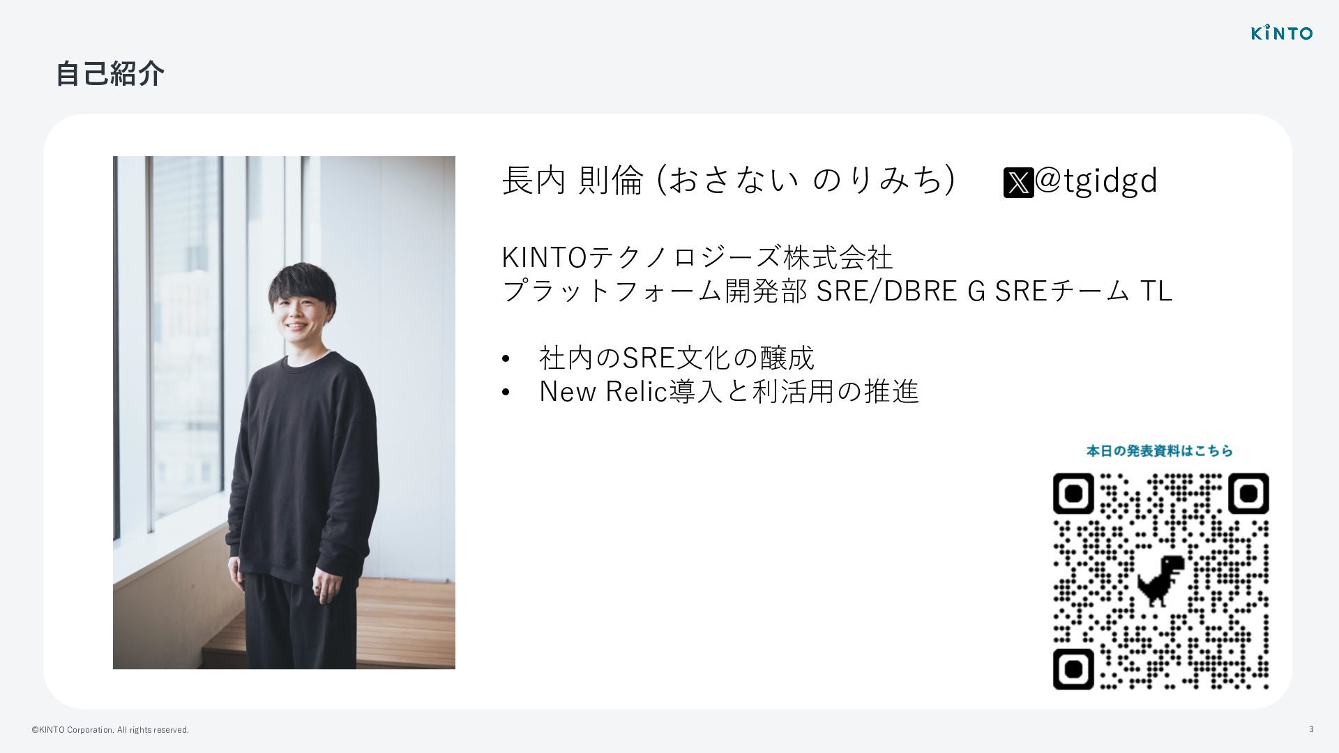 ©KINTO Corporation. All rights reserved. 3 ⾃⼰紹介 ⻑内 則倫 (おさない