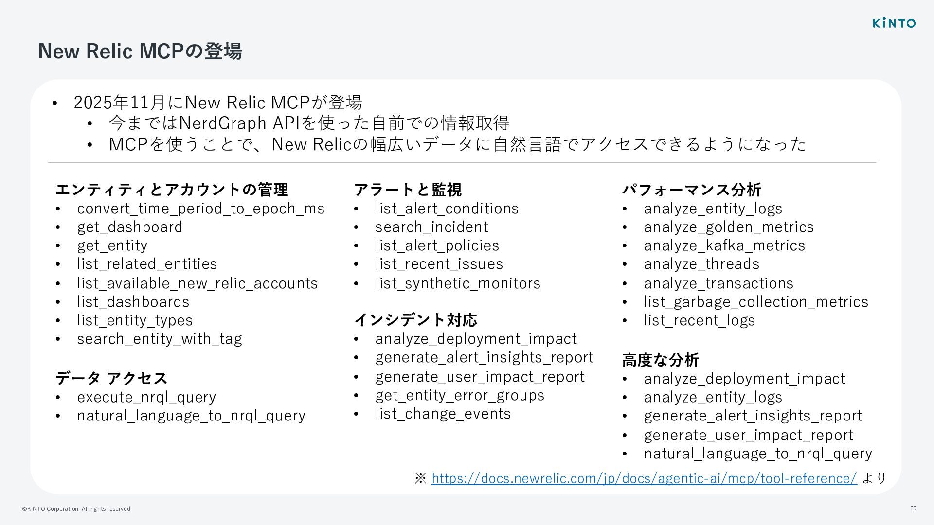 ©KINTO Corporation. All rights reserved. 25 New Relic MCPの登場 •