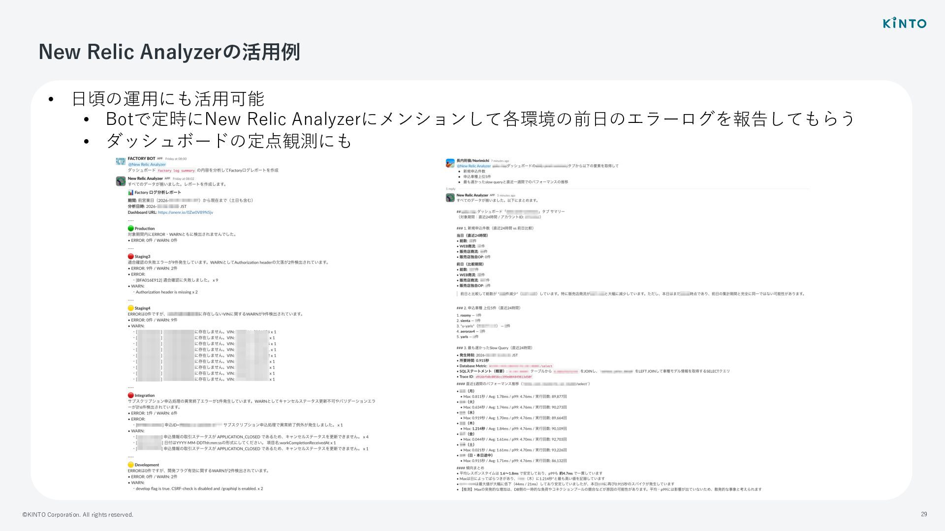 ©KINTO Corporation. All rights reserved. 28 New Relic Analyzerの活⽤例 •