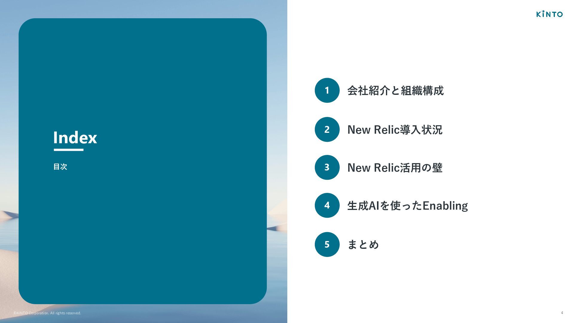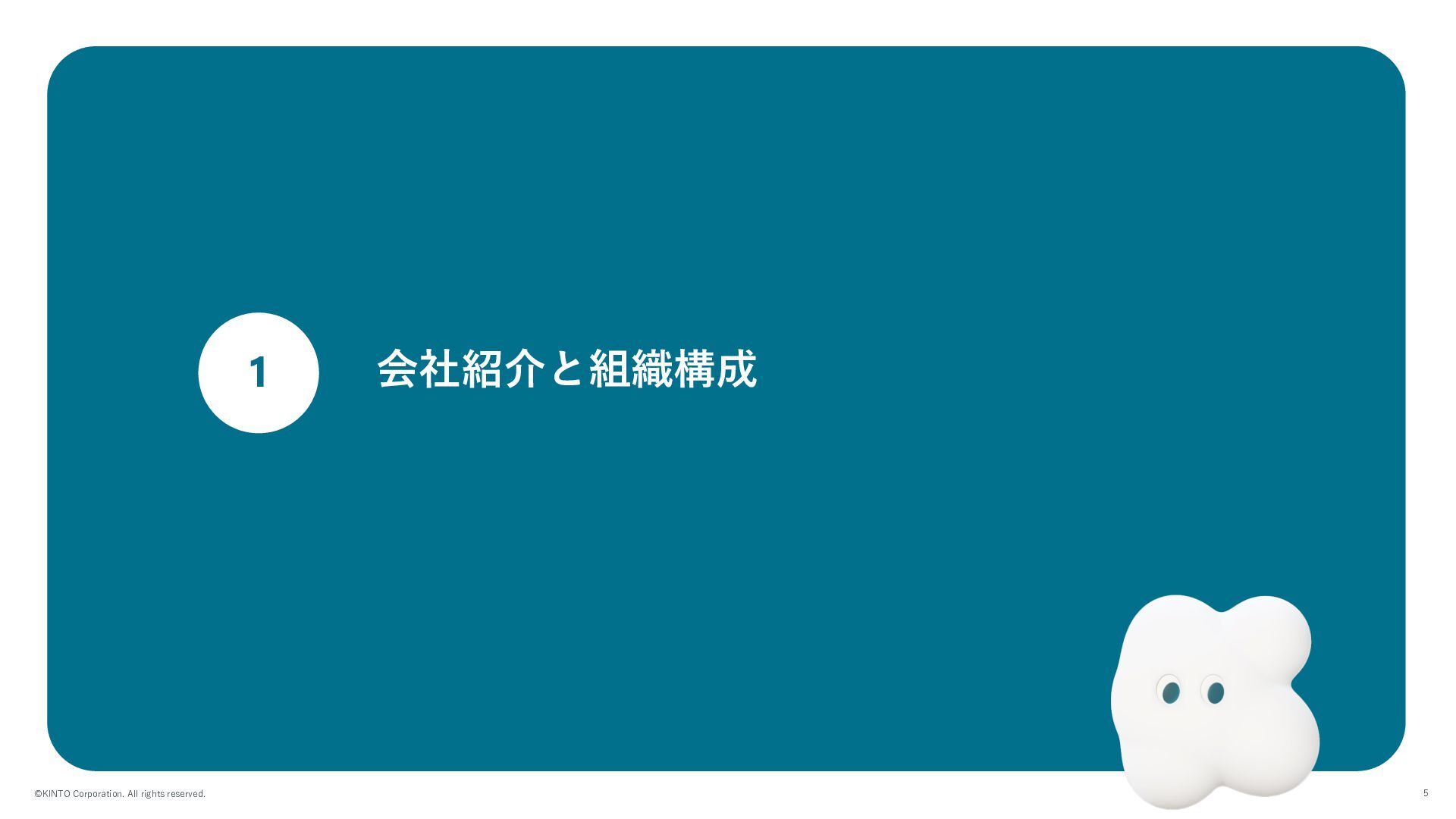©KINTO Corporation. All rights reserved. 4 Index 1 会社紹介と組織構成 2