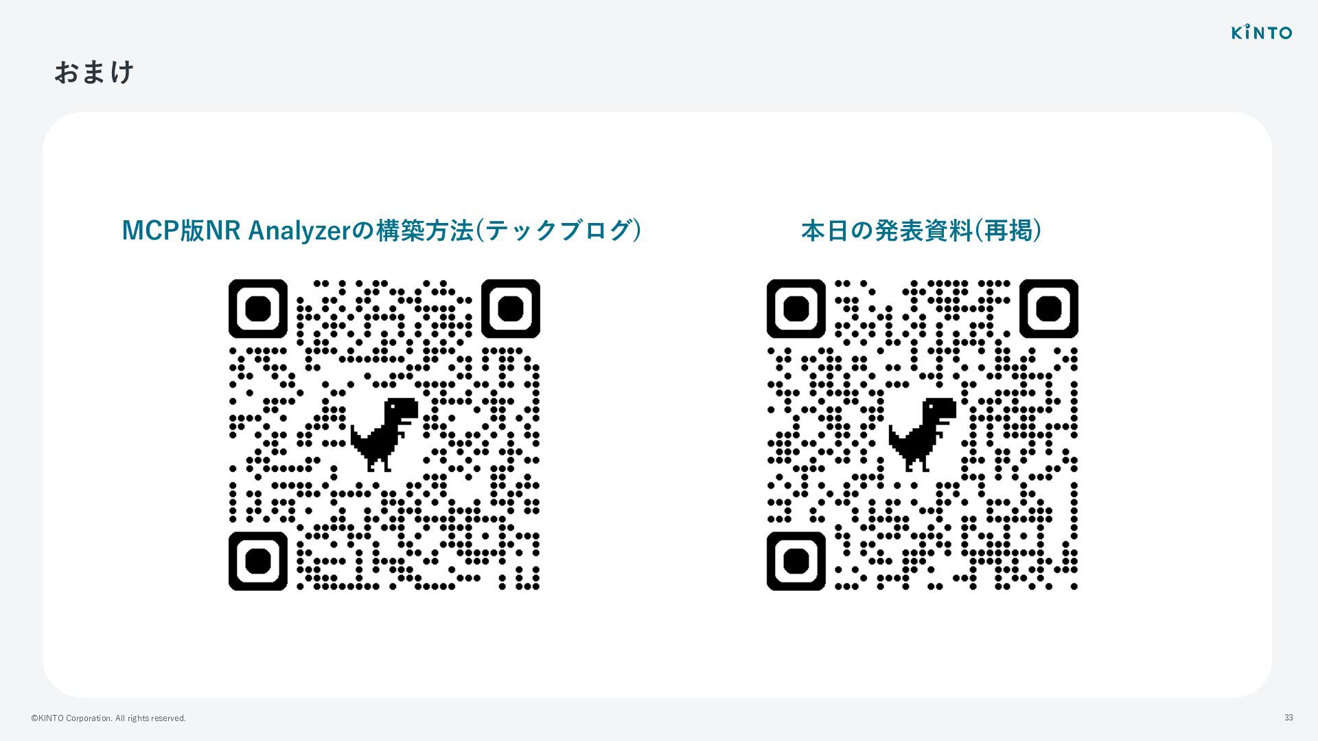 ©KINTO Corporation. All rights reserved. 33 おまけ MCP版NR Analyzerの構築⽅法(テックブログ) 本⽇の発表資料(再掲)