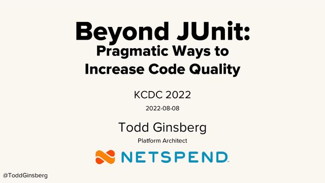 You and your team are writing and running unit tests - great! Better yet, they pass (most of the time)! But can you do more to ensure the quality of your code? Come to this talk where you will learn some practical new skills to help increase the quality of your code and catch bugs early in the development cycle. You'll learn how ArchUnit can help you write tests for your application architecture, and how TestCcontainers can help ease your integration testing burden. At the end of this talk, you will know several new techniques to bring to your codebase that will ultimately make your customers happy. This talk is aimed at Java developers who have some basic testing knowledge and want to move to the next level.