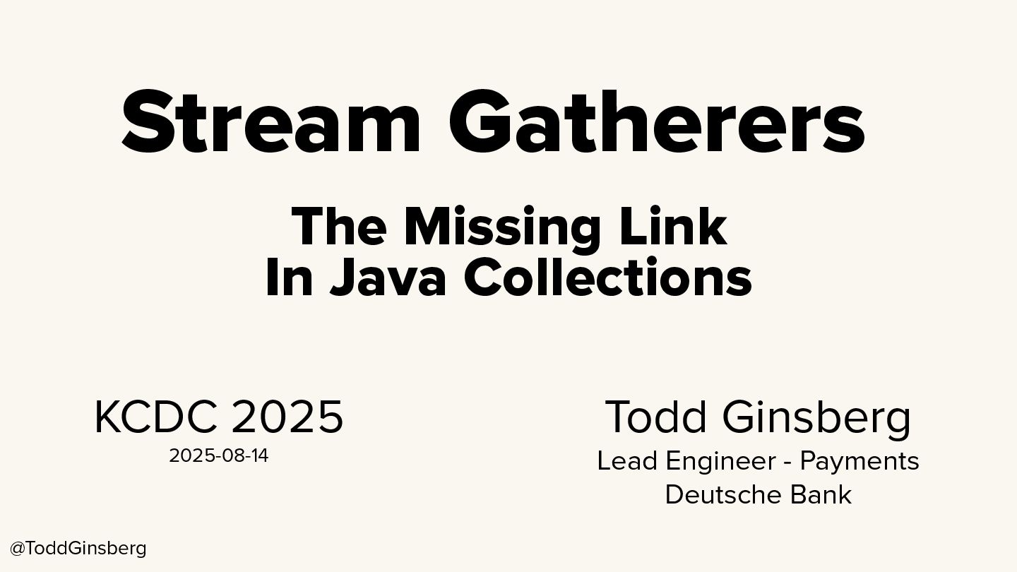 In Java Collections @ToddGinsberg Lead Engineer - Payments Deutsche Bank