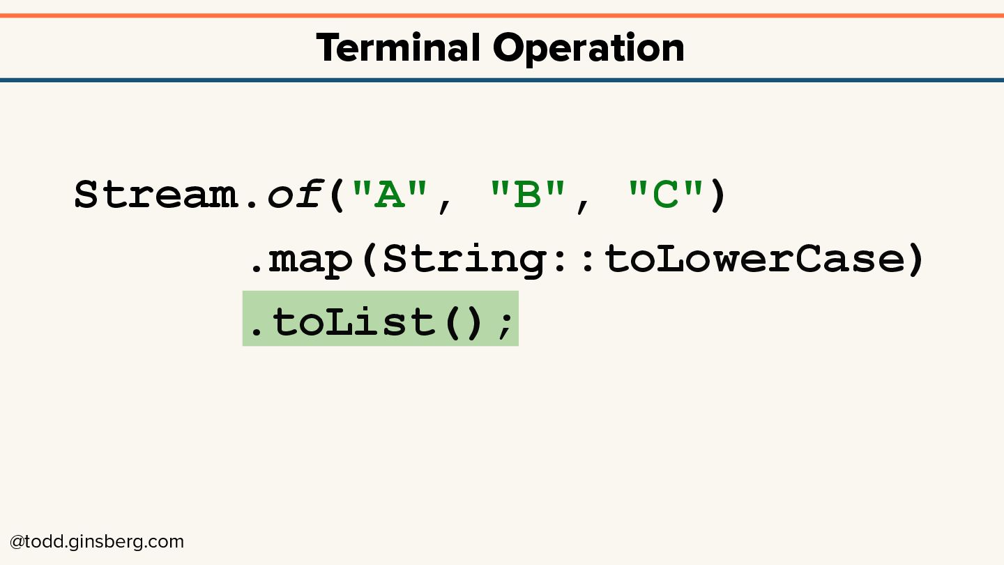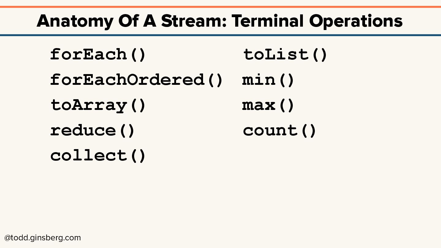 15. @todd.ginsberg.com Anatomy Of A Stream: Intermediate Operations map() mapToInt() mapToLong()