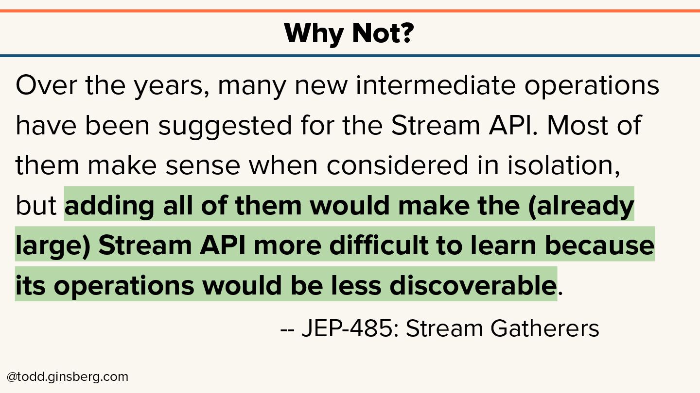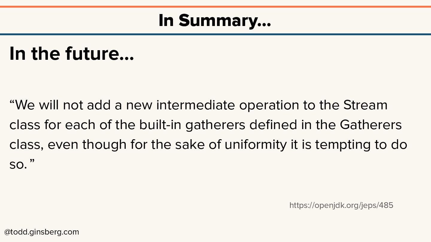 Ever wished you could do more with Java Streams? While adding custom terminal operations through Collectors is straightforward, creating new intermediate operations has always been challenging. This talk introduces Stream Gatherers, the feature that elegantly solves this limitation. Drawing from extensive experience developing the open source Gatherers4J library, we'll examine how Gatherers enable developers to create custom intermediate operations that seamlessly integrate with the existing Stream API. Through live coding and practical examples, you'll discover how to write custom Gatherers, understand their internal mechanics, and learn when they're the right tool for the job. This session is perfect for developers who want to level up their Java Stream expertise and expand their stream processing capabilities beyond what collectors alone can provide.