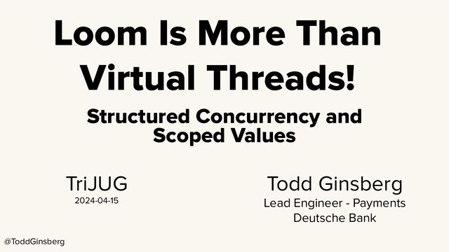Most of the talk about Project Loom as been about JEP 425: Virtual Threads. That's great because virtual threads are incredibly useful and will revolutionize how we write high-throughput applications. But did you know there are two more JEPs associated with Project Loom that are also very useful? First we'll learn about JEP 428: Structured Concurrency and how it will simplify multithreaded programming on the JVM. Next, we'll learn about JEP 429: Scoped Values which aims to solve some problems that ThreadLocals have had since their introduction way back in Java 1.2! Come to this talk and we'll learn why these projects are useful additions to the JVM, and write some code to illustrate where you'll be able to use them effectively.