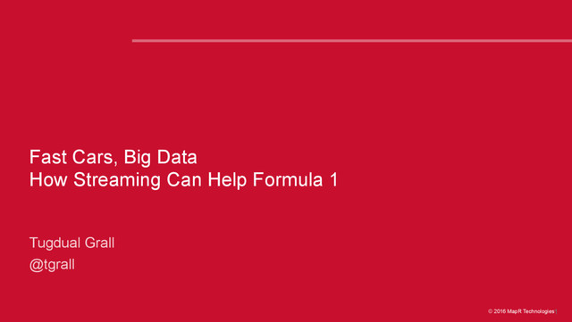 Modern cars produce data. Lots of data. And Formula 1 cars produce more than their share. I will present a working demonstration of how modern data streaming can be applied to the data acquisition and analysis problem posed by modern motorsports.