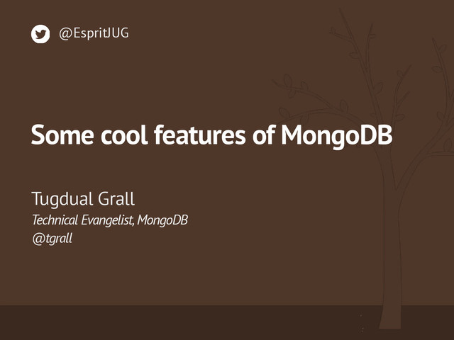 Some cool features of MongoDB : Geospatial, Full Text Search, Aggregation Framework. Presentation delivered May 2014 at the ESPRIT JUG Day 2014, Tunis