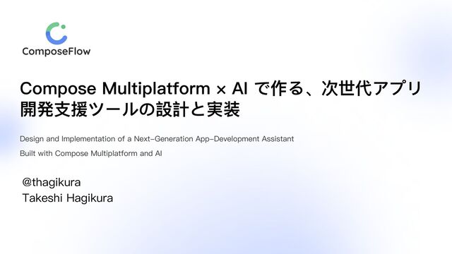 ComposeFlow 自体は現在クローズドソースですが、将来的にはオープンソースとして公開を予定しています。本セッションはプロダクトの紹介ではなく、「AI × GUI × Compose Multiplatform × Agent API 設計」という文脈での技術知見を共有することを目的としています。