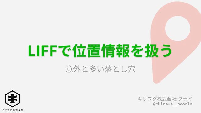 LIFFで位置情報を扱う 意外と多い落とし⽳ キリフダ株式会社 タナイ @okinawa__noodle
