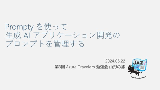 Prompty を使って 生成 AI アプリケーション開発の プロンプトを管理する 2024.06.22 第3回 Azure Travelers