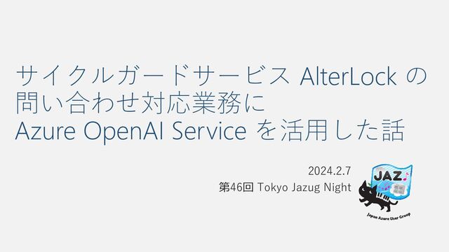 サイクルガードサービス AlterLock の 問い合わせ対応業務に Azure OpenAI Service を活用した話 2024.2.7 第46回